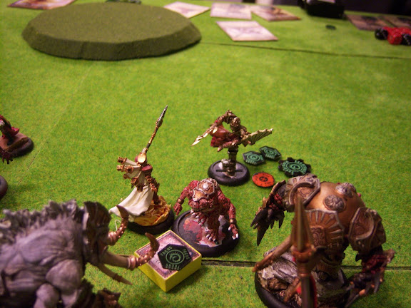 This latest battle was a rather interesting twist. Lance and I played a 750 point battle where each army had to contain 15 vps of warbeasts or warjacks. I can honestly say it was quite entertaining. Probably the best part was the very high level of discussion around various points in the battle where there were opportunities for assassination runs. [Warning: There's some proxy action in the pics, since some of the models being used are on my desk still being converted/painted]